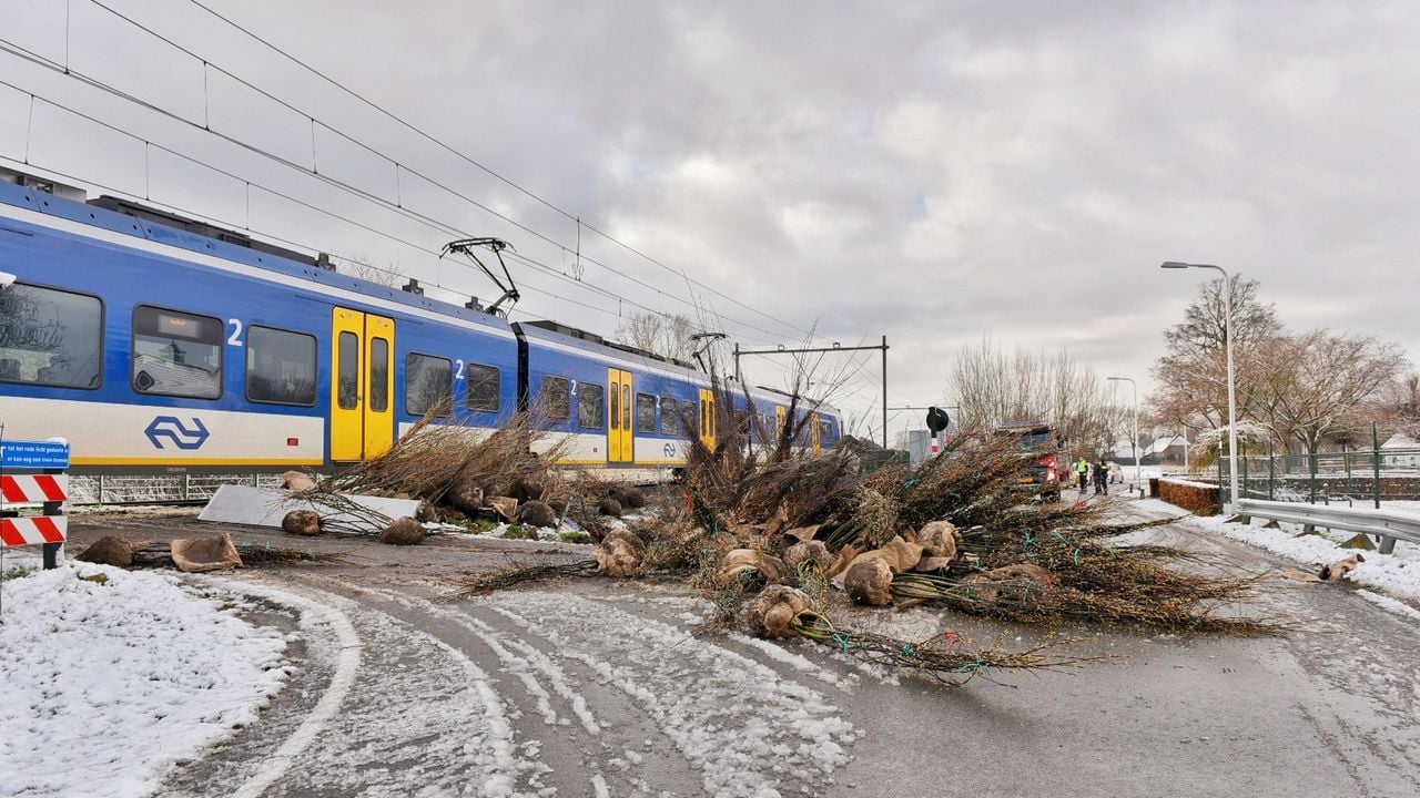 De trein reed van Den Bosch naar Tilburg. De trein heeft de vrachtwagen nog zo'n honderd meter meegesleept. De chauffeur vervoerde jonge bomen. Een berger is de ravage aan het opruimen.