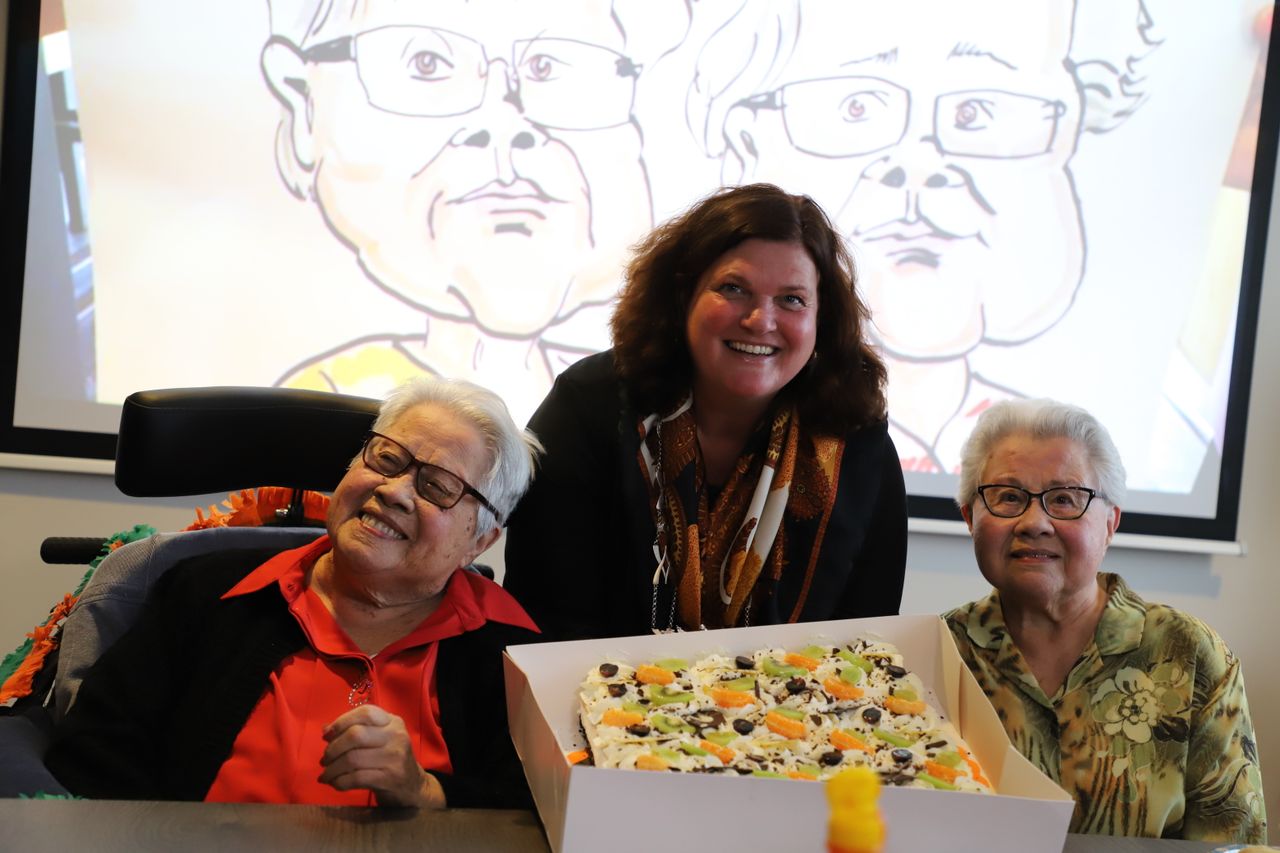 Daar wonen de tweelingzussen Adrienne en Jeannette, geboren in Nederlands-Indië en verhuist in hun jonge jaren naar Dongen waar hun vader vandaan komt. De tweeling mag inmiddels 88 kaarsjes uitblazen op deze schrikkeldag en krijgt een enorme taart van Marina Starmans.