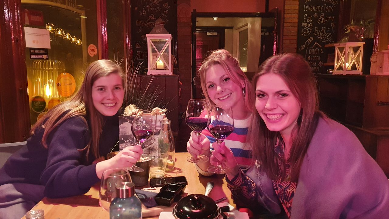 De mensen die nu op de terrasjes en in de restaurants zitten, proberen vooral door te gaan met hun leven zoals ze dat normaal doen. "Zolang de overheid zegt dat het kan, moeten we gewoon 'normaal doen' en de horeca helpen door daar te eten", vertelt Dafne terwijl ze met haar vriendinnen bij eetcafé De Tijd aan een wijntje zit.