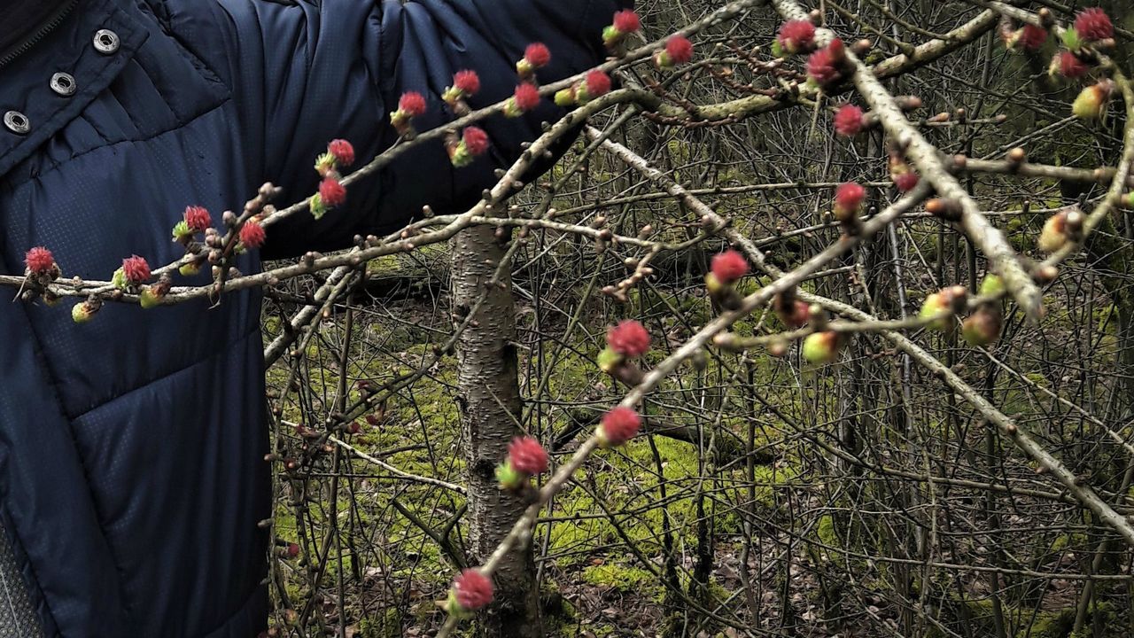 Op de foto hierboven zie je takken met mooie rode blaadjes waarop een groen beginstukje zit. Wat Harrie Brokken gefotografeerd heeft, zijn de bloemen van de lariks. Het groene beginstukje wat je ziet, zijn de blaadjes ofwel naalden. De rode bloempjes worden later de larikskegels. Lariksen behoren tot de coniferen en om precies te zijn tot de familie van de dennen. De lariks is een zeer oude boomsoort, die al meer dan 30.000 jaar op aarde voorkomt. De wetenschappelijke naam is larix decidua. Het tweede deel van de naam geeft aan dat deze boom bladverliezend is. Het hout van deze boom wordt gebruikt voor de vervaardiging van deuren en raamkozijnen, maar ook voor de scheeps - en bruggenbouw en ook voor meubels, fusten en dakpannen. In Moergestel staat een kapelletje met dit soort dakpannen. Als je weleens een bedevaartsplaats bezoekt, kan het best zijn dat je daar lariksen ziet staan want deze bomen werden beschouwd als heilige bomen.