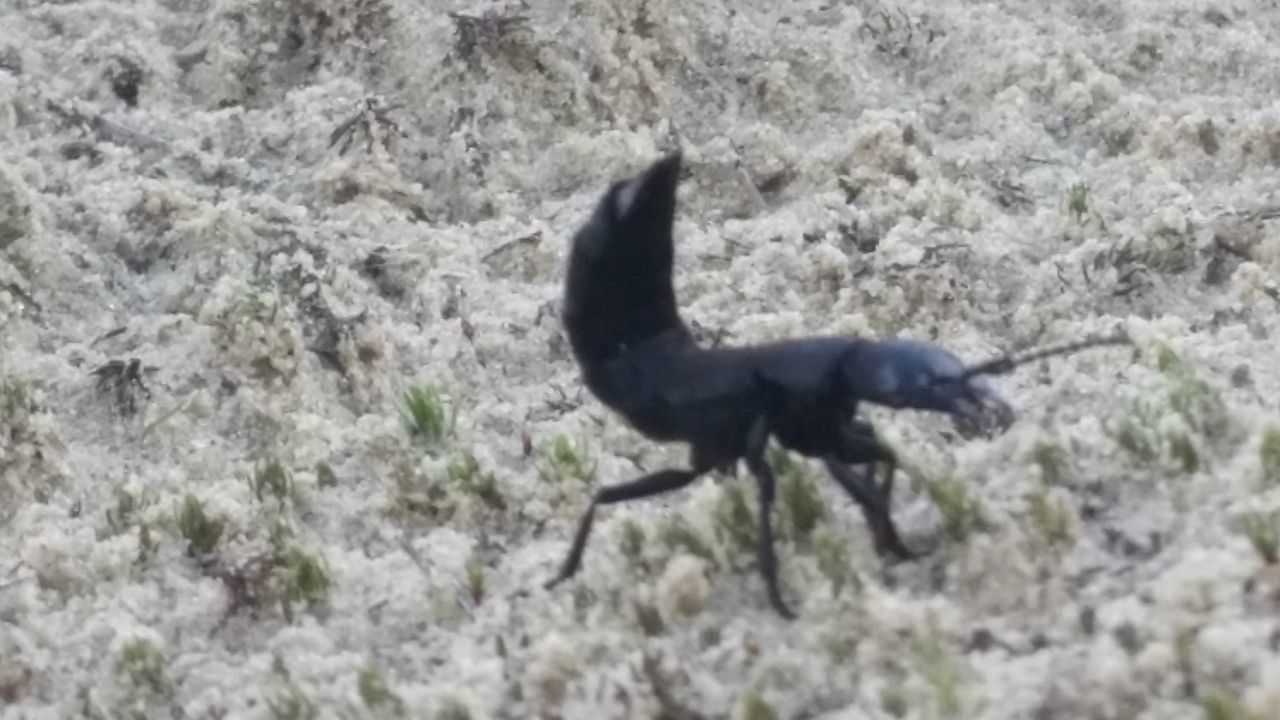 Op de bovenstaande foto zie je een zwart insect met het achterlijf ver naar boven gekruld. Aan de houding en de rest van het zwarte lichaam kan ik zien dat het gaat om de stinkende kortschildkever. Deze kever lijkt qua uiterlijk meer op een oorworm dan op een kever. Als dit insect ook nog eens het achterlichaam naar boven en naar voren buigt, lijkt 'ie inderdaad heel veel op een schorpioen en dat is ook zijn bedoeling. Zo’n dreigende houding zetten de stinkende kortschildkevers op als ze denken dat ze aangevallen worden. Vaak schrikt dit de vijand af. Mocht dit niet helpen, dan scheidt deze kever een stinkende, melkwitte vloeistof af. Hieraan heeft de stinkende kortschildkever dan ook zijn naam te danken. Ook de wetenschappelijke soortnaam olens duidt hierop, want dit woord betekent geurafgevend. Deze kever heeft zeer korte schilden. Dus niet zoals bij een lieveheersbeestje, waarbij het hele lichaam wordt bedekt met dekschilden. Mocht je deze kevers tegenkomen in je tuin - want daar zijn ze graag - moet je niet schrikken en ze gewoon laten zitten. Ze zijn namelijk erg nuttig. Ze zijn dol op slakken en aan planten knagende insectenlarven.