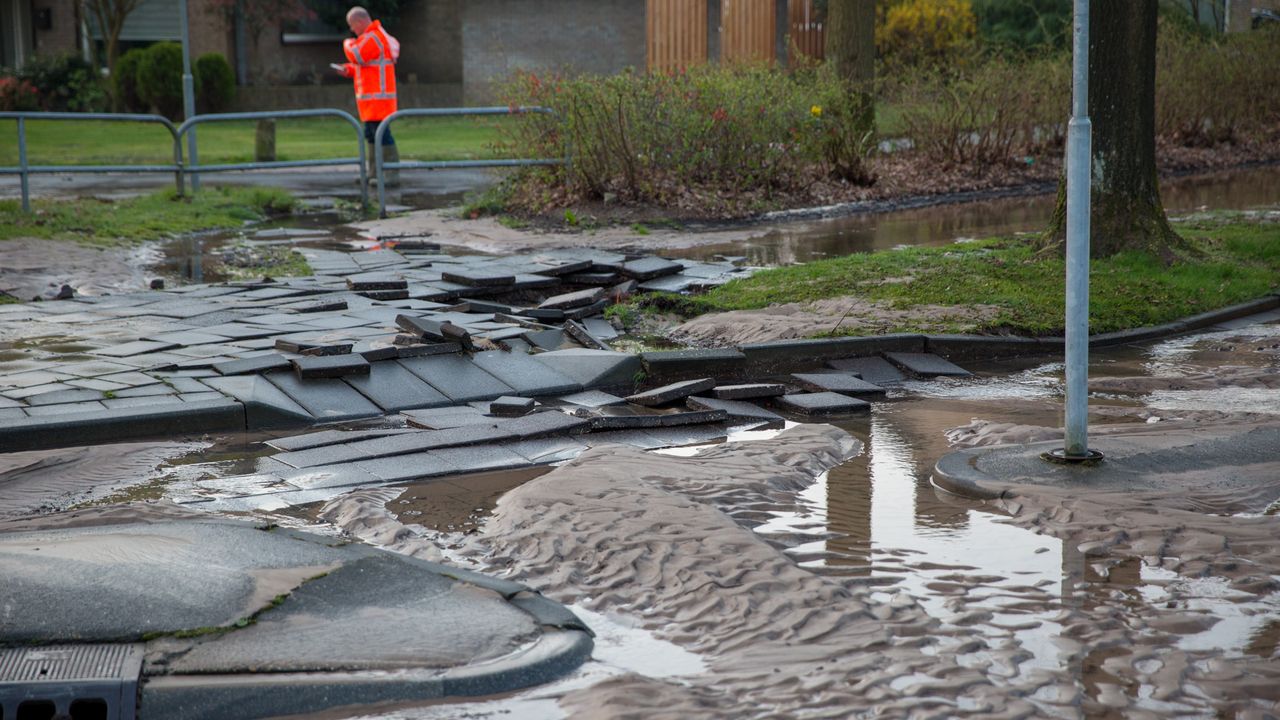 Straten blank na waterleidingbreuk in Roosendaal: 'Delen van de weg en de stoep zijn weggezakt'