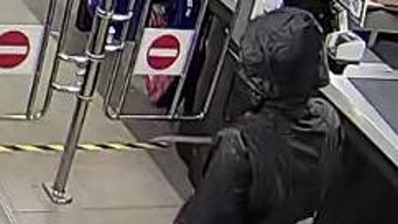 Uit beelden blijkt dat hij een zwart masker droeg. De politie vraagt het publiek hem te ontmaskeren.