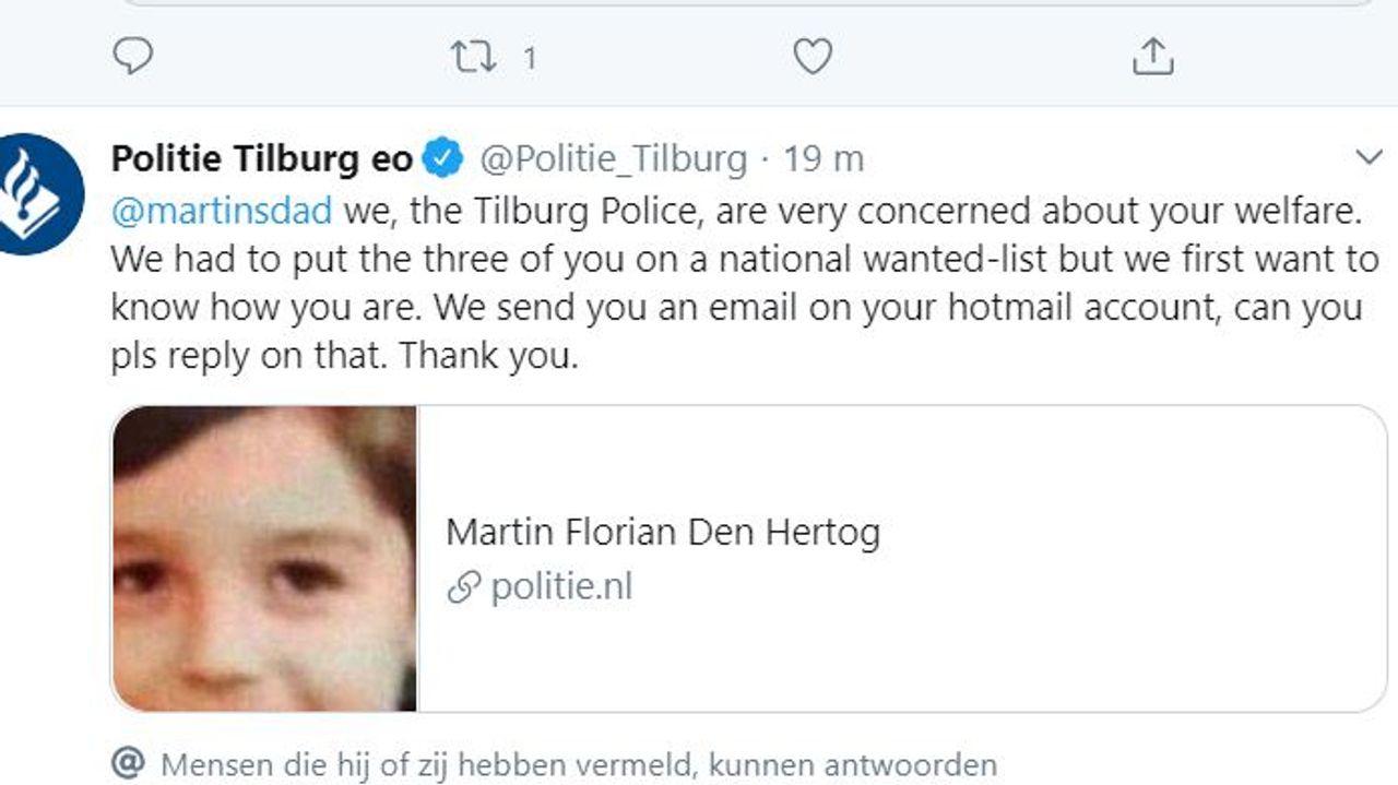 De politie Tilburg stuurde zondagmiddag een tweet naar de vader van Martin.