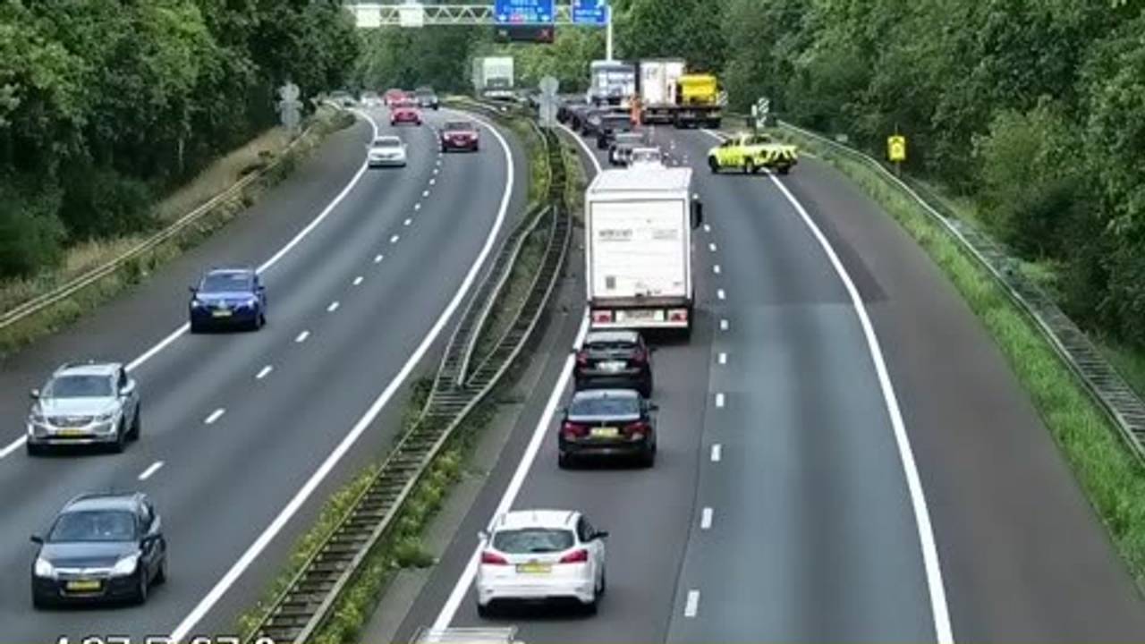 Verkeer op de A67 vast na ongeluk met twee trucks