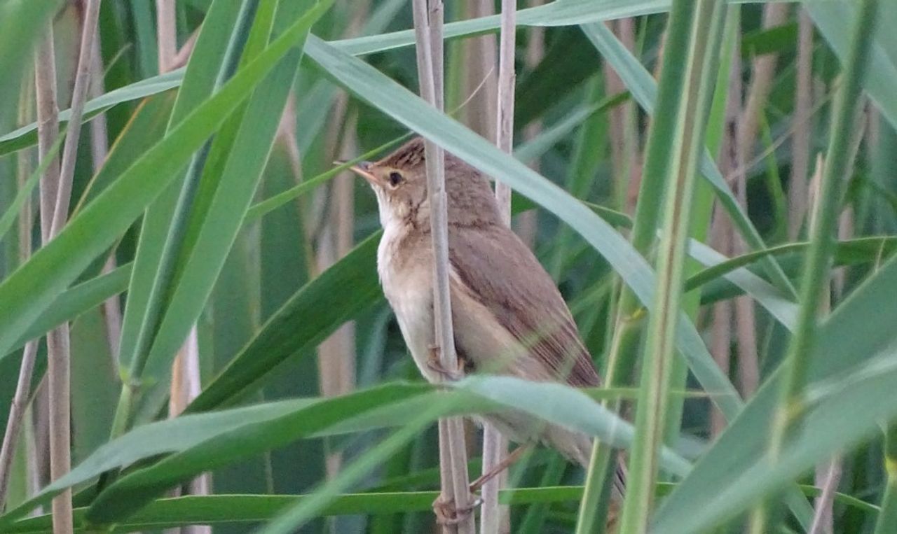 Op de foto zie je een bruinige vogeltje met een lichtere - bijna witte - bef en borst. José van den Brand vraagt zich af of dit de kleine karekiet is of de bosrietzanger. De eerste is het, want deze vogel heeft een egaal gelige bruine bovenzijde en een vuilwitte bef en borst. Het 'grote' verschil zit vooral in de kleur van de poten. De bosrietzanger heeft licht geelroze poten en die van de kleine karekiet zijn grijs. Daarnaast heeft de bosrietzanger een dikkere en kortere snavel. En het verenpak van de bosrietzanger bevat in het bruin grijsgroene tinten en die vogel heeft gelere flanken. Daarnaast vraagt José zich af waarom die kleine karekiet zoveel fluit. De vogel zit altijd zeer goed verstopt in het riet en hij wil iedereen duidelijk maken dat hij daar wel degelijk zit ondanks dat je hem bijna niet ziet. In het blog van Jozef van der Heijden kun je het lied mooi horen.