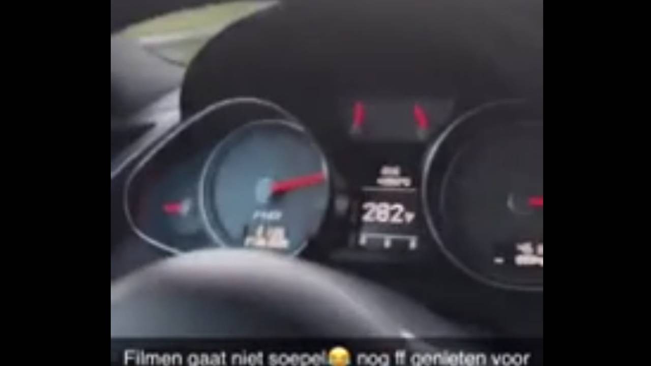 Het filmpje op Dumpert is maar kort. Slechts 9 seconden. Op de snelheidsmeter is te zien dat de racewagen een snelheid haalt van 284 kilometer per uur.