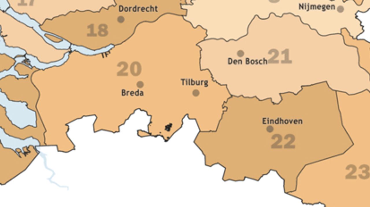 Brabant telt drie veiligheidsregio's: Midden-West (20), Noord (21) en Zuidoost (22):