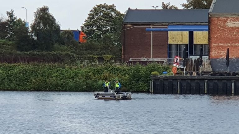 De vindplek is afgezet met zwarte schermen en met een kraan is de auto uit het water gehaald.
