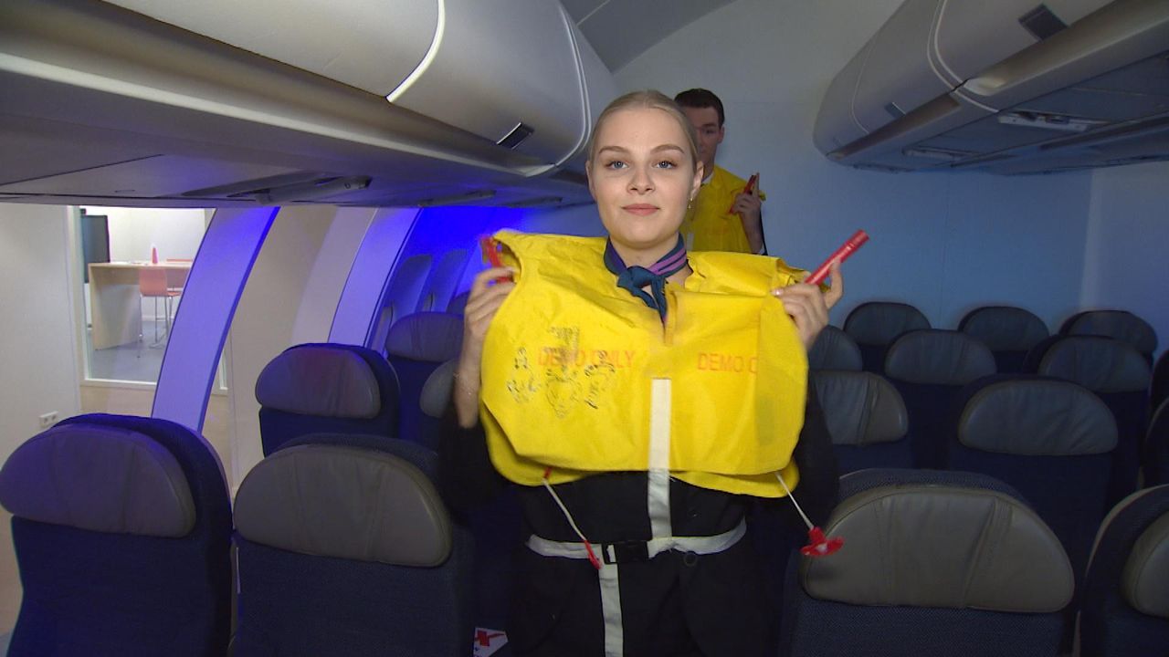 Zo oefenen stewardessen in opleiding met de nieuwe vliegtuigsimulator bij Eindhoven Airport