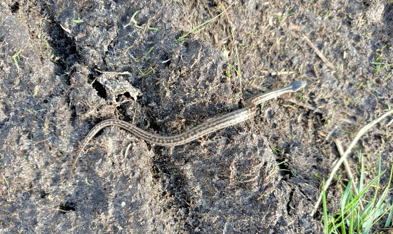 Op de foto die Hans van Baare stuurde zie je een slangachtig wezen en hij dacht dat het misschien weleens een gladde slang zou kunnen zijn. Volgens mij heeft Hans gelijk en is het inderdaad een gladde slang. De kop en het patroon op het lichaam geven dat ook aan. Daarnaast klopt ook het biotoop, want gladde slangen wonen voornamelijk op hogere delen van hoogveengebieden en daar is voldoende van aanwezig in de Groote Peel. Je kan ze verder ook tegenkomen op droge heideterreinen en in open bossen op zandgronden. Overigens is deze niet giftige slang gemakkelijk te verwarren met een hazelworm, pootloze hagedis, want die heeft ook een bruine kleur en een rolrond lichaam, maar de kop is rolrond. Ook de lengte is anders, gladde slangen halen amper de 65 centimeter, terwijl hazelwormen amper 40 centimeter lang kunnen worden.