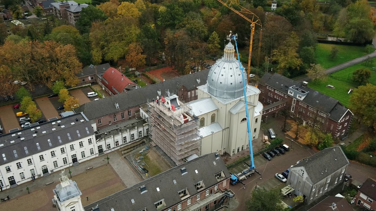 Zo wordt het kruis op de koepel van de Kapel van Saint Louis in Oudenbosch gezet