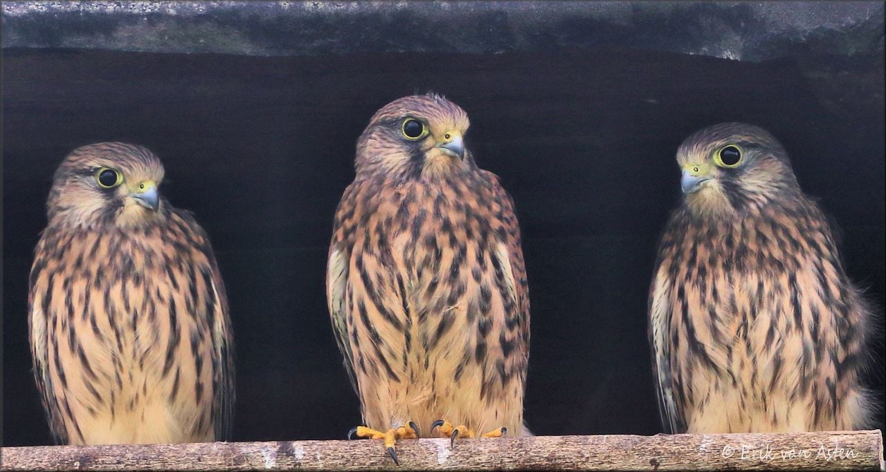 Als de torenvalken in april weer gaan broeden, gaan de leden van de werkgroep alle kasten weer langs om te kijken of de kuikens dan wel recht en stevige op hun poten staan.