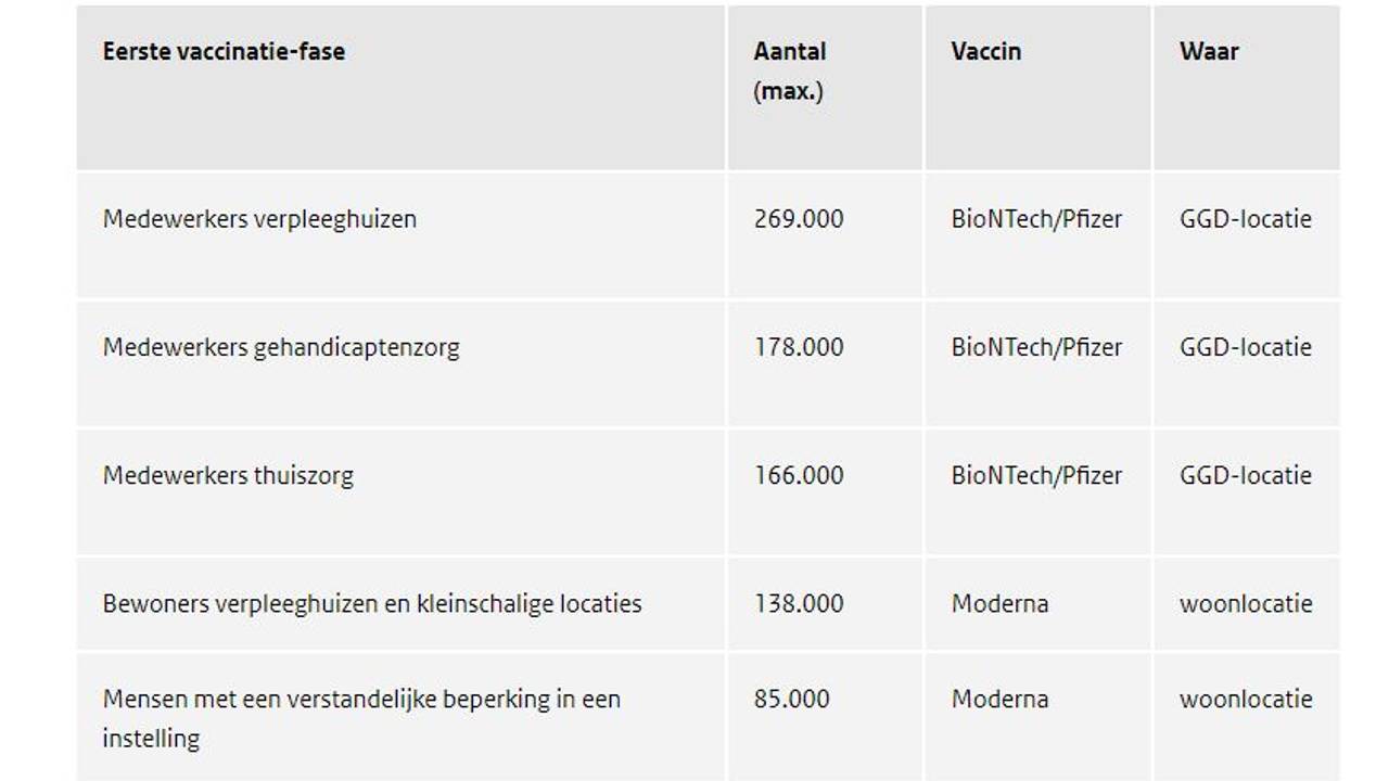 Zo ziet de eerste vaccinatie-fase eruit (Bron: Rijksoverheid)