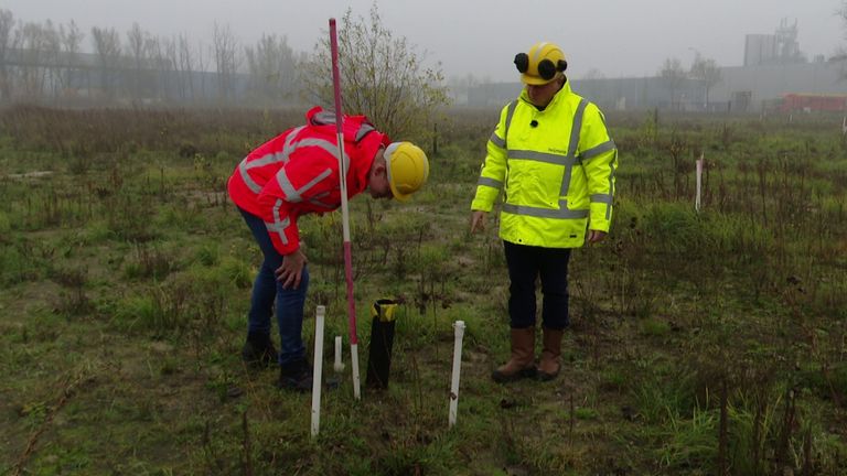 "Hier gebeurt het allemaal", zegt design coördinator Sjouke Koen van Heijmans Infra. Hij wijst naar een stel gele containers op het omheinde braakliggende terrein aan de Vlasweg. Het perceel van 70.000 vierkante meter dat ooit die grote tanks met gifstoffen herbergde, oogt misschien wel klaar voor nieuwe bebouwing. Maar schijn bedriegt. "Het meest indrukwekkende zit namelijk onder de grond", vertelt Koen.