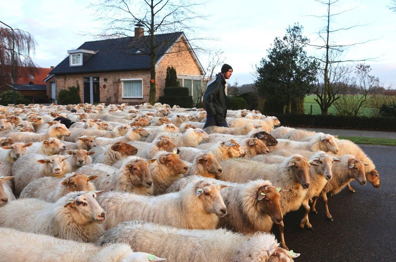 Topdrukte op de wegen in Helvoirt op deze maandagochtend tussen kerst en oudjaar. Maar liefst 250 schapen, begeleid door twee herders en een hond, trokken naar de weilanden aan de Schoorstraat in het dorp. Het leverde mooie plaatjes op.