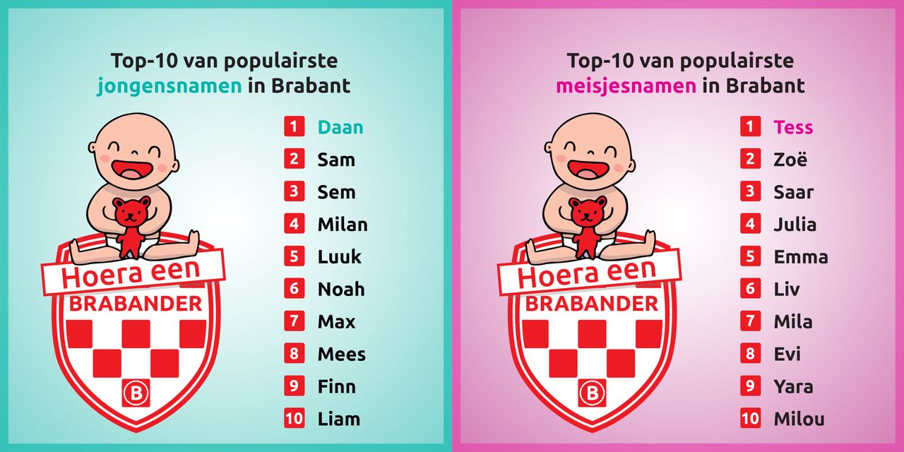 Dit zijn de populairste kindernamen van Brabant in 2020