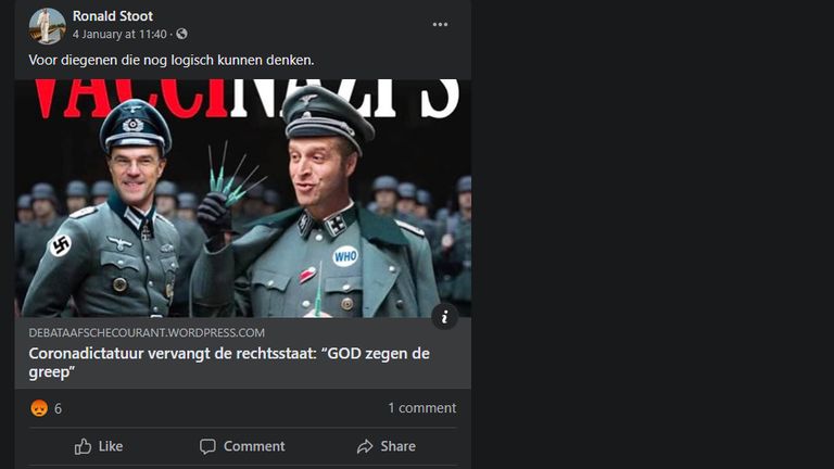 Ook op social media wordt duidelijk dat Stoot niks moet hebben van alle coronaregels. De Tweede Wereldoorlog en de nazi’s worden betrokken in berichten over Rutte en De Jonge. Op social media zegt Sloot dat alle winkels gewoon weer open kunnen. ‘’Beste mensen, alles kan ook open. De overheid heeft nog steeds geen getekende coronawet en mondkapjesplicht’’, zo schrijft hij.
