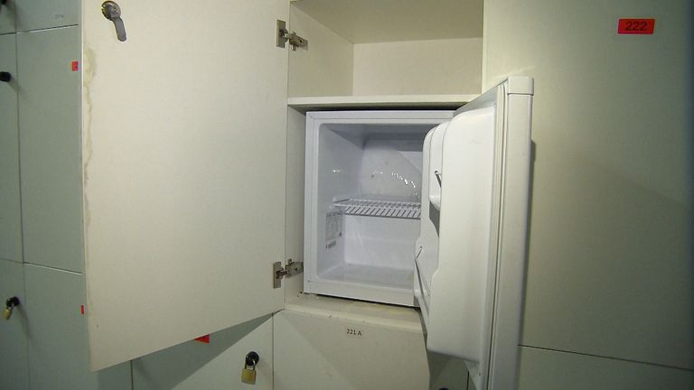 Ze wonen samen op een kamer waar een bed, kast en klein bureau staan. Daarnaast hebben ze een eigen badkamer. Daarvoor betaalt het stel 800 euro. Grote inkopen doen is lastig, want er is weinig ruimte om te koelen. Ze laat gang zien waar in ieder kluisje een minibar zit. “Je hebt er één per persoon, wij hebben er dus twee. Het is heel klein, dus we kunnen niet veel in één keer kopen.”