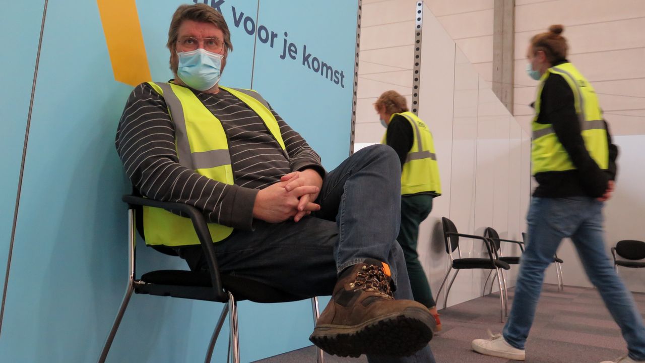 Een enkeling voelt zich direct na de vaccinatie wat slapjes. Een vrouw ligt daarom buiten het zicht even op bed. "Naaldangst", zegt iemand van Rode Kruis, die een oogje in het zeil houdt. Een Dextrootje, wat water en vijf minuten later gaat het weer.