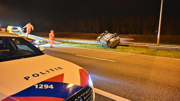 Onderzocht wordt of de automobilist die over de kop sloeg onder invloed was op het moment van het ongeluk.