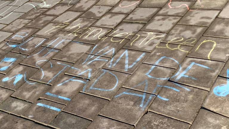 Het idee komt van de Eindhovense Renee Scheepers (30). "Ik fietste vanochtend naar mijn studio, maar om nou meteen te gaan werken en in de waan van de dag terecht te komen, voelde zo raar. Ik wilde niet gaan actievoeren of zo, maar ik had wel stoepkrijt in mijn studio staan."