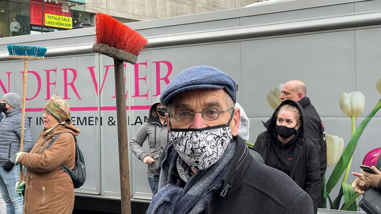 "Ik ben hier vooral om een tegengeluid te laten horen. Dit had nooit mogen gebeuren. Er zijn zoveel andere manieren om het beter op te lossen. De beelden van de rellen zijn hartverscheurend. De ondernemers hebben het al zo zwaar. Dan wordt je zaak ook nog gesloopt..."