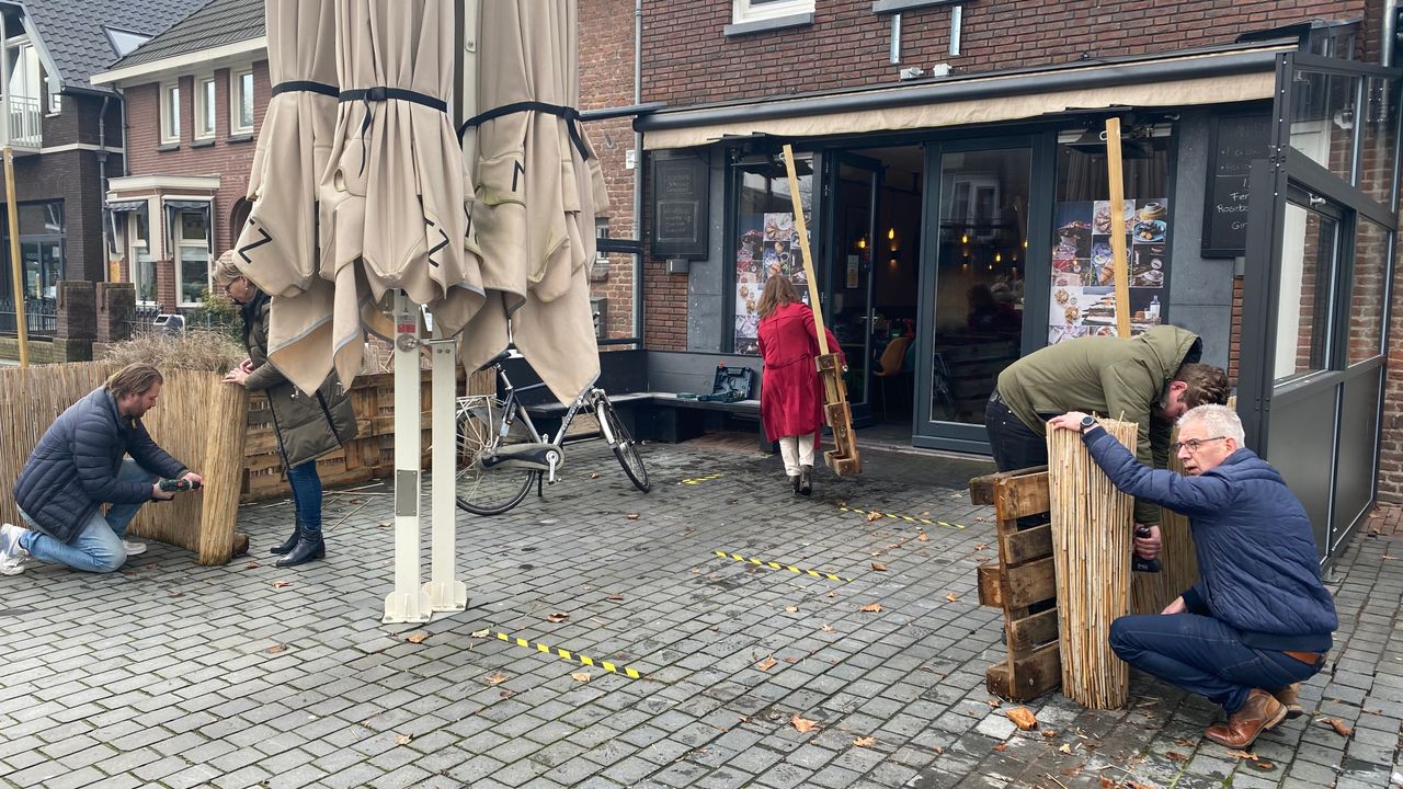 Er hangt spanning in het dorp. Omwonenden komen even een kijkje nemen en spreken hun verbazing naar elkaar uit, terwijl steeds meer aanhangers met houten platen arriveren. Delen van terrassen worden weggehaald en plantenbakken worden naar binnengereden. Winkeliers die besloten geen platen te plaatsen, zorgden wel dat alle voorraad uit de winkels is gehaald.