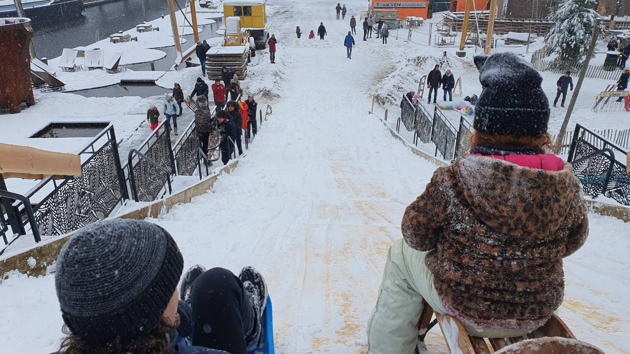 Beide heren zijn ook al zelf met de slee van de heuvel af gegaan. "Dat ging goed, hard! Echt een goede zondagbesteding dit hoor."