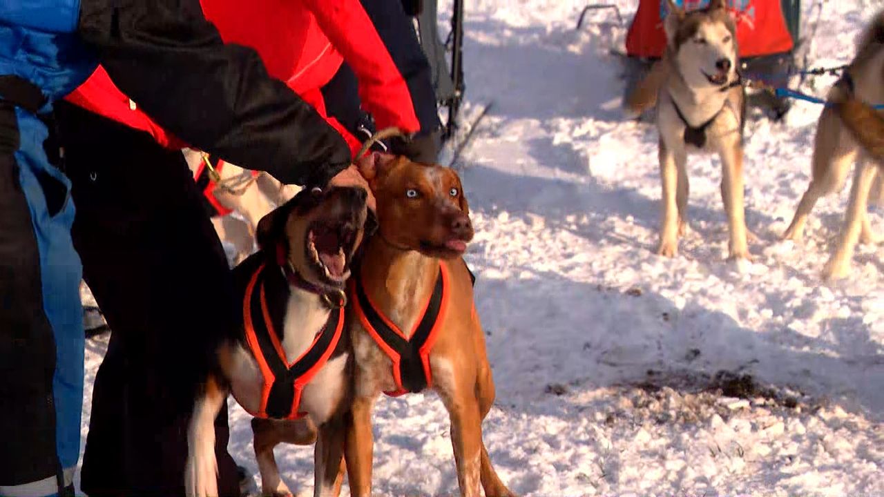 Wandelaars die genieten van de sneeuw en het lekkere zonnetje, kijken even raar op als Stefan met zijn honden voorbij komt sleeën. De honden hebben geen oog voor de toeschouwers. "Die zijn alleen gefocust op de snelheid. Ze vinden dit heerlijk", vertelt Stefan enthousiast.