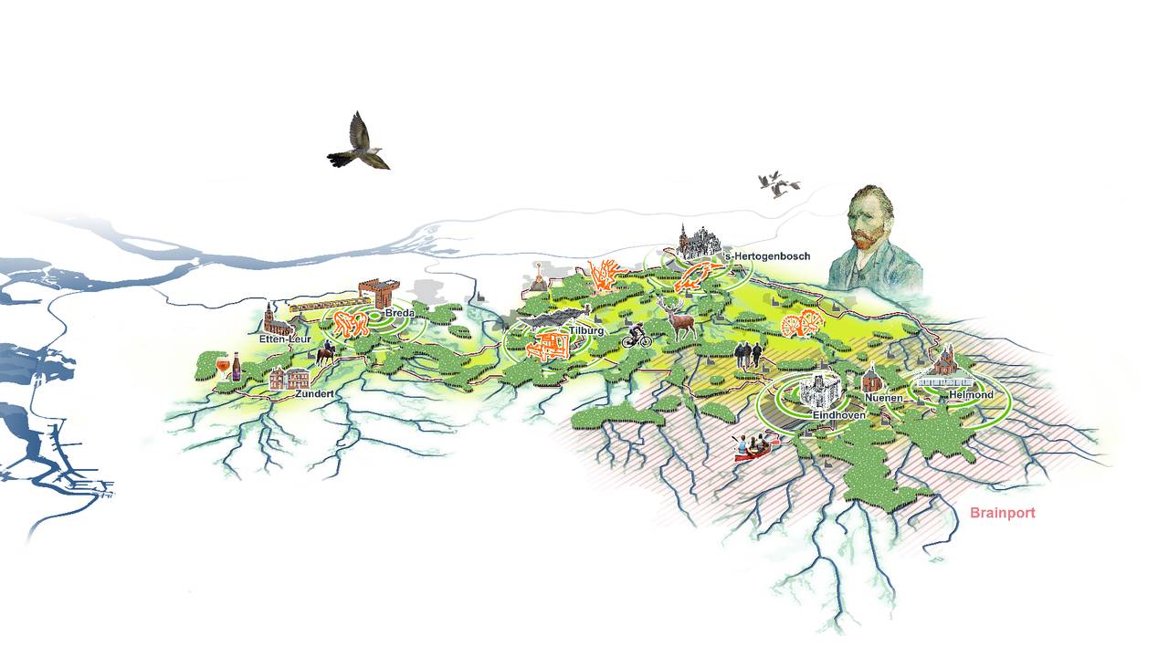 Het 120.000 hectare grote Van Gogh Nationaal Park strekt zich uit over alle gebieden waar Vincent van Gogh, de beroemdste inwoner van Brabant, zijn voetstappen zette. Dus van zijn geboortegrond in Zundert, via Etten-Leur, Breda, Tilburg naar Eindhoven, Helmond en Nuenen, waar hij een van zijn beroemdste werken maakte: De Aardappeleters.
