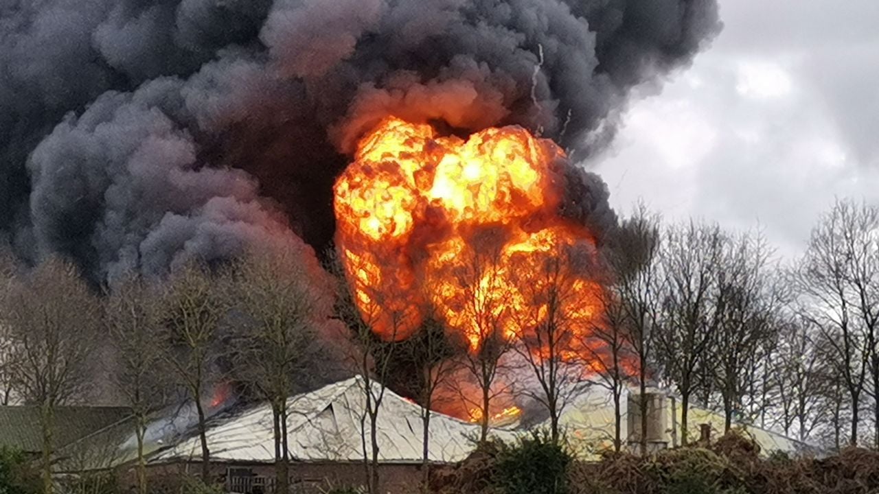 De brandweer bevestigt dat het om een caravanstalling gaat. Ook staan er tractoren en andere voertuigen in de loods. Op het adres is een interieurbouwbedrijf gevestigd.