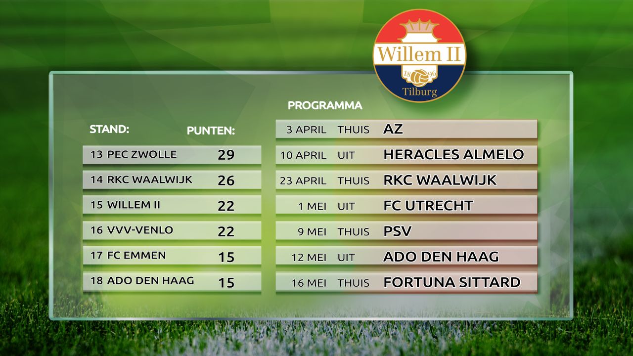 De stand en het resterende programma van Willem II.