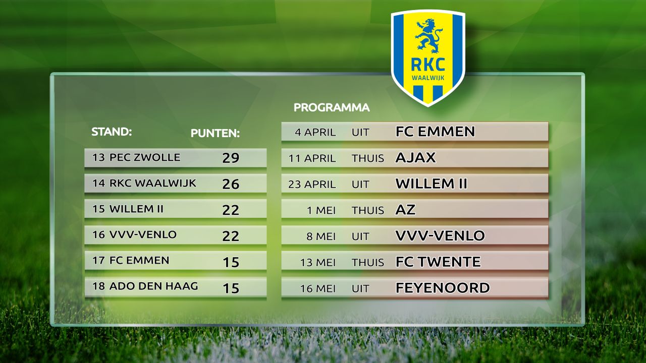 De stand en het resterende programma van RKC Waalwijk.