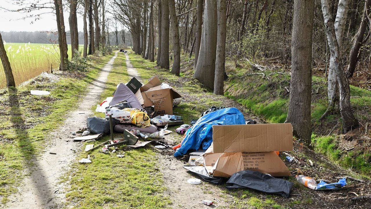 De boa’s doorzochten het afval zaterdagmiddag en vonden tussen de spullen de adresgegevens en een telefoonnummer van de vermoedelijke dumper. Die kreeg tot zes uur in de avond de tijd om de zooi alsnog op te ruimen. Er werd beloofd dat ook te doen. Maar de realiteit bleek anders: het afval ligt nog altijd verspreid over het pad.