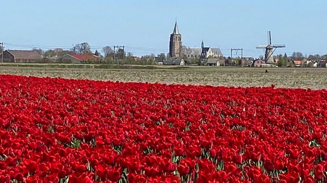 Prachtige dronebeelden van de tulpenvelden in... Wouw