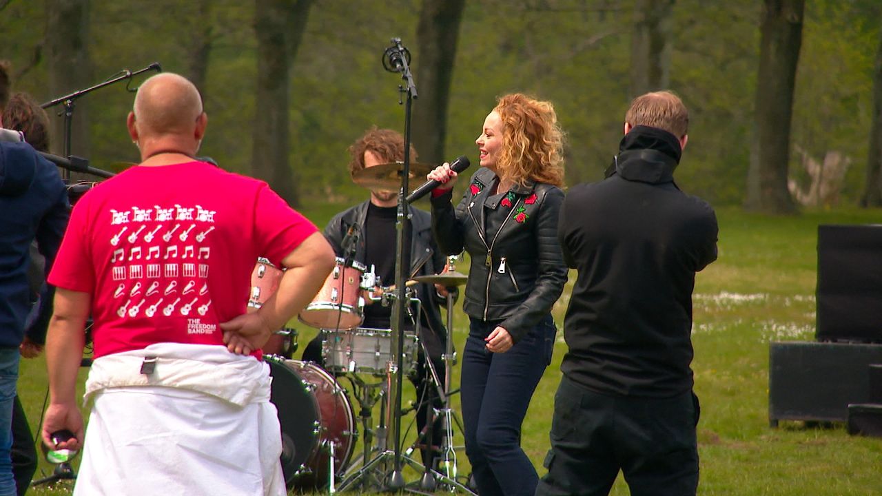 Zangeres Anneke van Giersbergen is er wel in levende lijve bij. Anneke stond in het verleden vaker op het podium van het bevrijdingsfestival. "Het is een vreemd gevoel, maar we gaan iets heel moois doen vandaag", zegt ze. Het nummer van de Scene heeft voor haar ook een bijzondere betekenis als het gaat om vrijheid. "Alle mensen die op de wereld wonen, moeten er samen in vrijheid wat van maken. Die tekst is van alle tijden", zegt ze lachend.