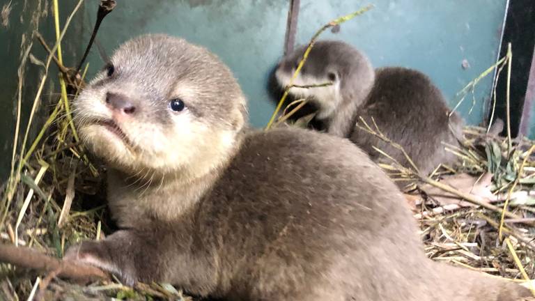 De kleinklauwotters wonen nog in de kraamkamer, een beschermde plek waar ze de eerste maand blijven. "Naar verwachting kan het publiek die over een maand zien, als we open mogen."