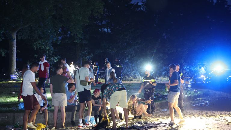 Eerder op de avond zouden er tweeduizend mensen zijn geweest. Er werden fakkels en vuurwerk afgestoken en de jongeren zongen met de muziek, onder meer van André Hazes mee, blijkt uit filmpjes die verspreid zijn.