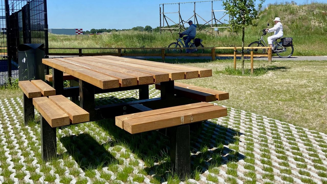 Een picknicktafel waar niemand wil zitten, want Big Brother kijkt mee