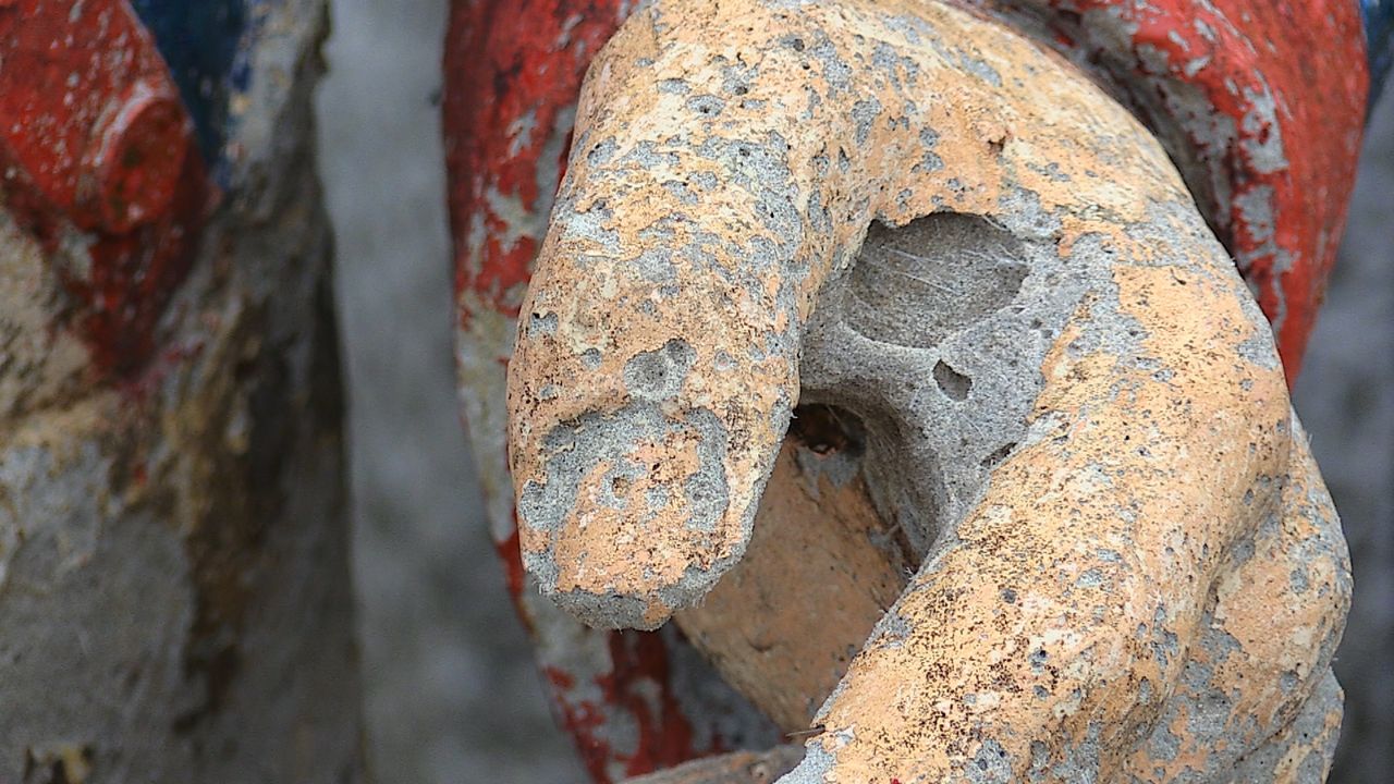Op een afstandje zien de beelden er nog redelijk uit. Wie net als de onderzoekers de details wat dichterbij gaat bekijken ziet wel degelijk schade. Een hand van een soldaat is gescheurd, bij de ander veroorzaakt een schroef een scheur in het geweer en weer een ander heeft nog slechts een half geweertje tot zijn beschikking.