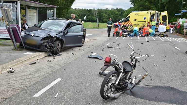 Bromfietser zwaargewond bij frontale aanrijding met auto