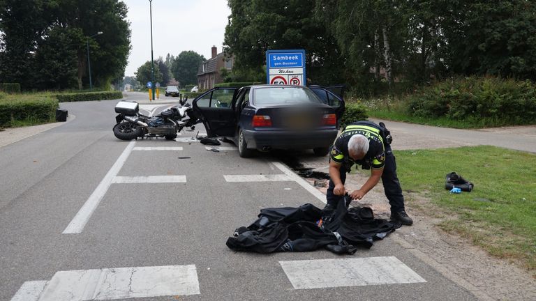 Bij een frontale botsing in de Grotestraat in Sambeek tussen een auto en een motor is zaterdagmiddag iemand zwaargewond geraakt. Het gaat om de bestuurder van de motor. Het slachtoffer is met spoed naar het Radboudumc in Nijmegen gebracht.