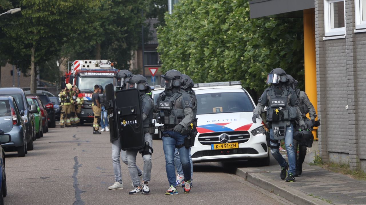 Een arrestatieteam is zaterdagochtend ingezet na een melding over vuurwapens aan de Bilderdijkstraat in Den Bosch. Ook de brandweer werd opgetrommeld, omdat bij aankomst van de politie rook uit het huis kwam.