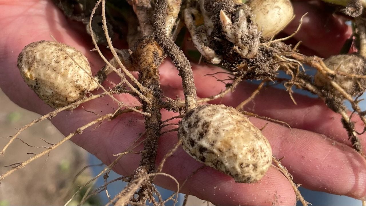 De Pindakaaswinkel kan niet wachten om nog meer potjes op de markt te brengen. Dit jaar moet de tweede oogst hetzelfde opleveren, maar het zit wat tegen. “Het is niet de zomer die we gewend waren." Om dat aan te tonen, steekt Anniek de riek onder wat pindaplanten. De pinda’s groeien onder de grond. “Kijk hier zit wel iets onder en bij deze is het minimaal.”