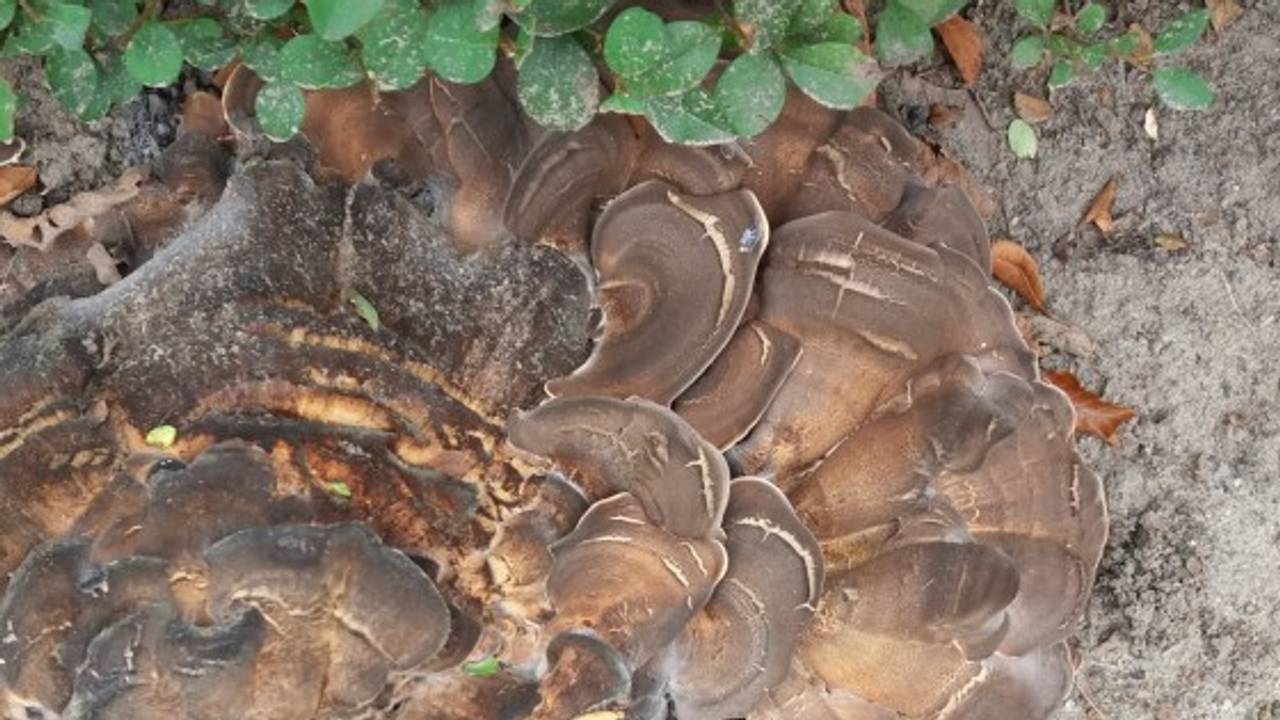 Op de foto van Auke van Veen zie je een mooi grijsachtige zwam met diverse hoeden. We hebben hier te maken met de eikhaas. De eikhaas is een houtzwam, die je vooral kunt vinden aan de voet van de stam van levende eiken, maar ook bij stobben van deze bomen. Het zijn wat zeldzamere houtzwammen die je aan het eind van de zomer of het begin van de herfst kunt tegenkomen. Deze houtzwam is niet alleen mooi, maar ook nuttig in de geneeskunde. “Omdat deze zwam het immuunsysteem stimuleert wordt onderzocht of deze bij de behandeling van aids en kanker gebruikt kan worden", is te lezen op Wikipedia. "Mogelijk zijn er ook toepassingsmogelijkheden bij hoge bloeddruk, diabetes mellitus en een te hoog cholesterolgehalte. In november 2006 is een nieuw eiwit ontdekt (GFAHP) dat gemaakt wordt door de eikhaas, wat het herpes simplex virus (HSV) remt. Dit eiwit kan helpen bij de genezing van herpes.“