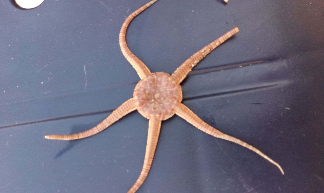 Op de foto van Maria van Mensvoort staat een hele mooie gewone slangster afgebeeld en niet zoals Maria aangaf een zeeslang. Wat wel klopt wat zij schrijft is dat deze gewone slangster iets te maken hebben met zeesterren. Zeesterren en gewone slangsterren behoren namelijk tot de stekelhuidige dieren. Deze groep van in zee levende dieren zijn te herkennen aan 5 symmetrische uiteinden. Naast deze gewone slangster zijn dat bijvoorbeeld de zeelelies, de zee-egels en de zeekomkommers, maar er zijn er meer. In totaal zijn er namelijk 7000 soorten beschreven. De rood tot grijsbruine gewone slangsterren leven op modder- en zandbodems, waarin ze zich ook ingraven.