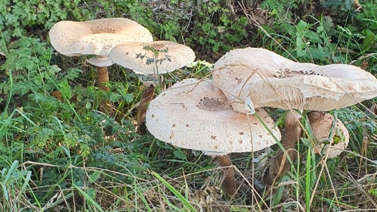 Op de foto van Karin Cornelissen zie je een paar hele mooie lichtbruine paddenstoelen met bruine stelen staan. Bij sommige paddenstoelen zie je ook een grote wittige hoed met bruine vlekken. Wat dan vooral opvalt, is hoe groot deze soort is. We hebben hier te maken met de grote parasolzwam. Momenteel staan heel veel weilanden vol met deze paddenstoel. Ik heb dan ook heel veel meldingen over grote parasolzwammen ontvangen. Waar de naam op gebaseerd is, is wel duidelijk. De hoeden van parasolzwammen worden heel groot, vaak hebben ze een doorsnede van meer dan veertig centimeter. Overigens komt de naam parasol uit het Italiaans, want para il sole betekent zonnescherm. Niet geopende parasolzwammen lijken een beetje op een paukenstick of drumstick. In die jonge situatie is de grote parasolzwam heel goed eetbaar, maar ook een verse openstaande hoed is nog eetbaar.