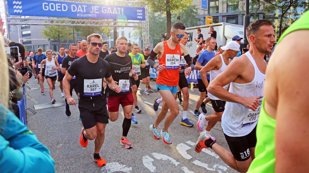 Duizenden lopers verschenen zondag aan de start van de Marathon van Eindhoven. Nadat het evenement twee jaar lang niet kon doorgaan vanwege de coronapandemie, was het nu weer als vanouds een sportief gebeuren, met heel veel fitte deelnemers die stonden te popelen van start te gaan, gespierde kuiten en een vriendelijk oktoberzonnetje. Onze fotografe stond bij de finish en legde er de meest uiteenlopende beelden vast.