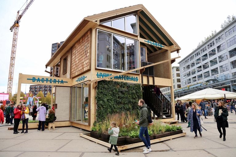 Maak kennis met jouw circulaire leefomgeving in dit iconische huis van de toekomst, opgebouwd met maar liefst honderd duurzame bouwmaterialen. Hier kun je zien wat je kunt bouwen met ondenkbare materialen zoals zeewier, paddenstoelen en aardappelzetmeel. Je ziet een toilet met een coating van leem en gesteente op de vloer en wanden en een woonkamer met een biolaminaat vloer gemaakt van lisdodde en aardappelzetmeel. Een fascinerende plek om eens rond te lopen. En dat kan zelfs vanuit je luie stoel (al is in het echt bekijken veel leuker).
